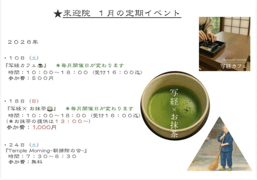 【2026年 1月 定期イベント】ご案内 ☕ 10日(土) 『写経カフェ』 10:00〜18:00(受付16:00まで) 参加費:500円 静かな時間に、写経とコーヒーを。 dz…