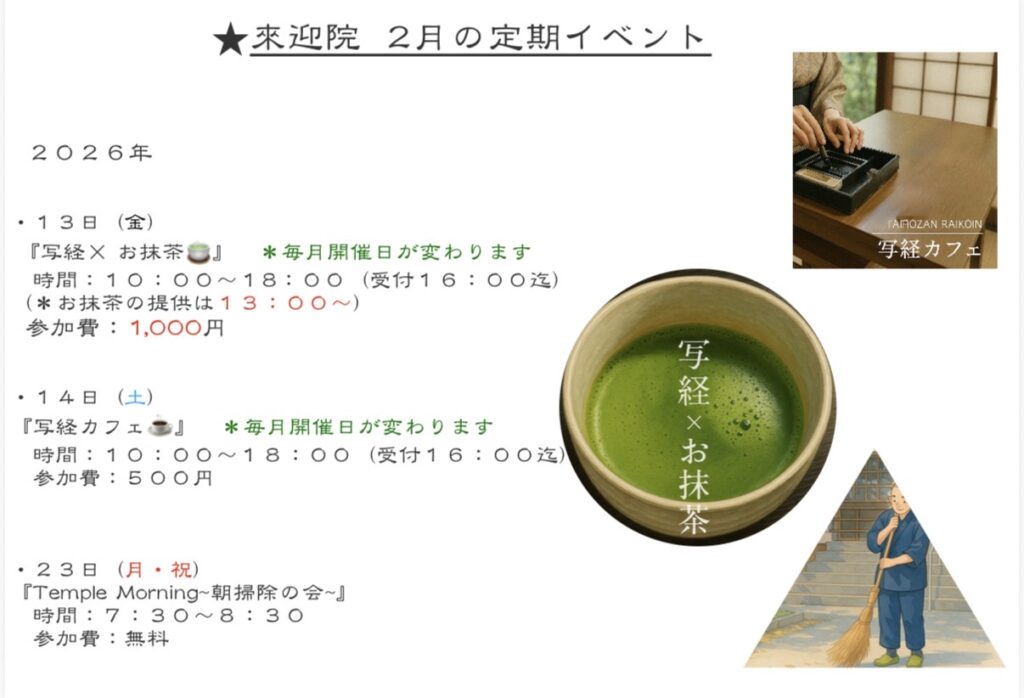 【2026年 定期イベント】ご案内 🍵 13日(金) 『写経 × お抹茶』 10:00〜18:00(受付16:00まで) 日月茶会 木本さんによる呈茶がございます🍵 @…